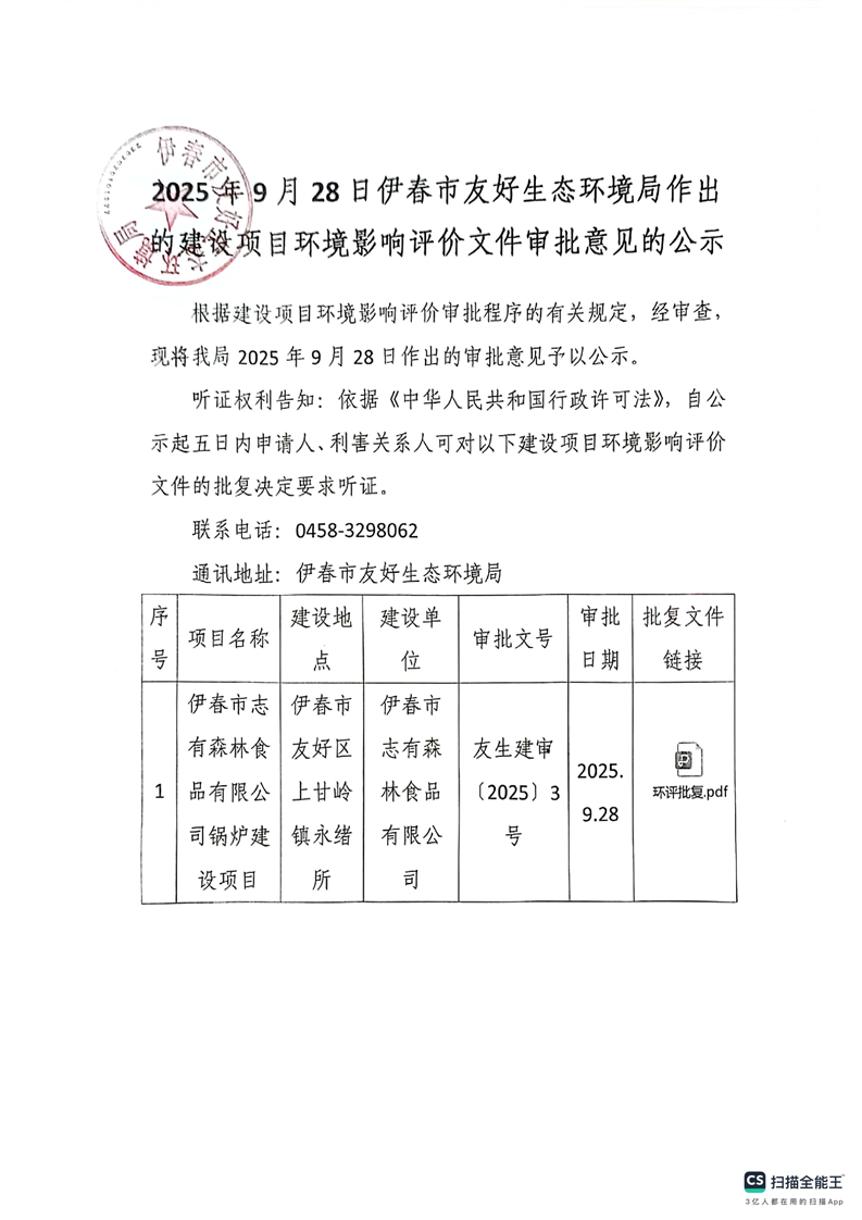 2025年9月28日伊春市友好生态环境局作出的建设项目环境影响评价文件审批意见的公示