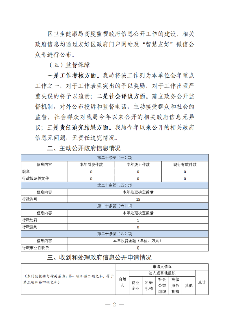 友好区卫生健康局2022年政府信息公开工作年度报告