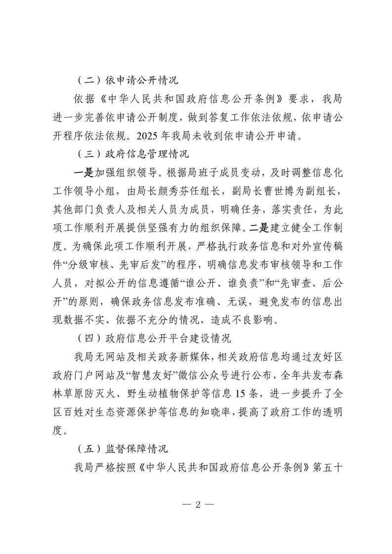 友好区林业和草原局2025年政府信息公开工作年度报告