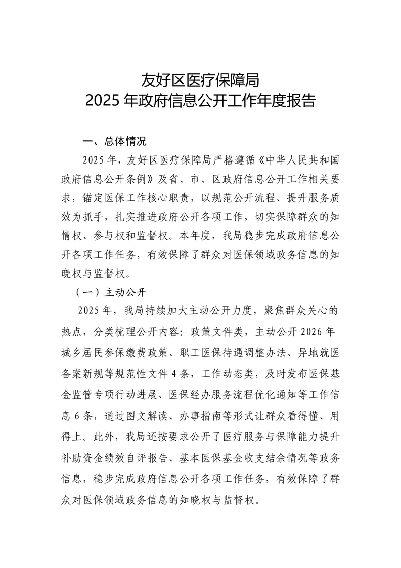 友好区医疗保障局2025年政务信息年度报告