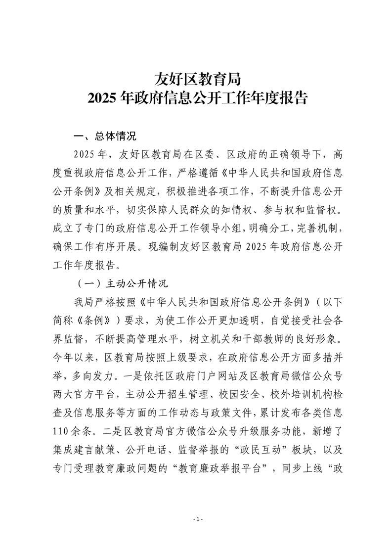 友好区教育局2025年政府信息公开工作年度报告