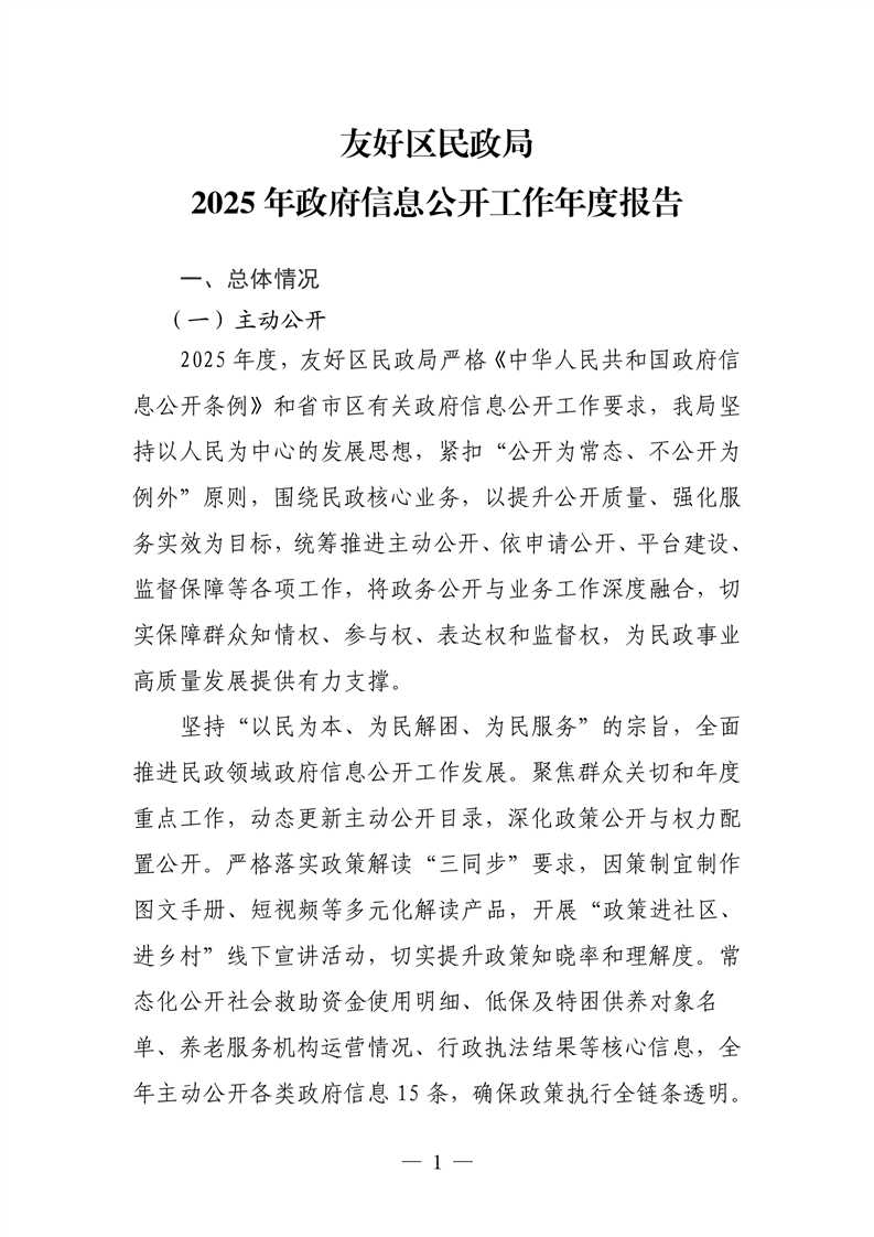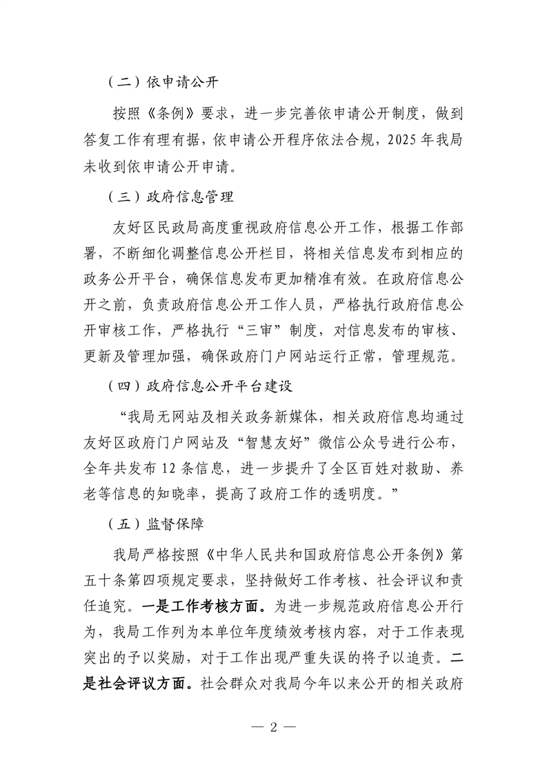 友好区民政局2025年政府信息公开工作年度报告